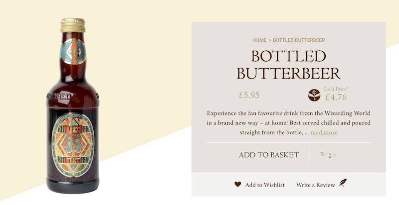 Dentro de la web oficial de The Harry Potter Shop at Platform 9 3/4 podemos encontrar el bonito regalo para el niño, para la niña, la cual viene en forma de cerveza de mantequilla.