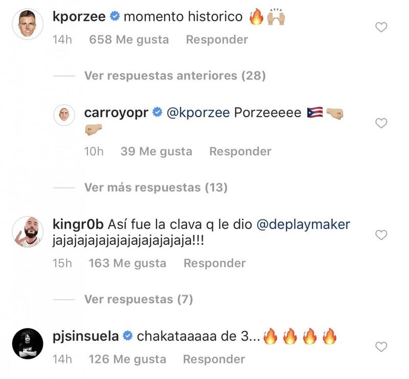 Entre los que no pudieron aguantar escribir alguito figuraron Carlos Arroyo, PJ Sin Suela y hasta la propia Federación de Baloncesto de Puerto Rico puso su comentario de gozo.