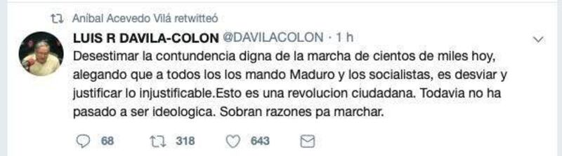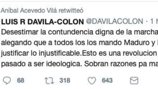 Mire el ejemplo de los ahora tortolitos de Twitter Luis Dávila Colón y Aníbal Acevedo Vilá. Ellos se pasan peleando en la radio, y en más de una ocasión Davilongo le ha sacado en cara las acusaciones federales de corrupción en su contra de hace años, además de que, vamos, todos sabemos el viejo D.C. es tremendo estadista bragao’.
