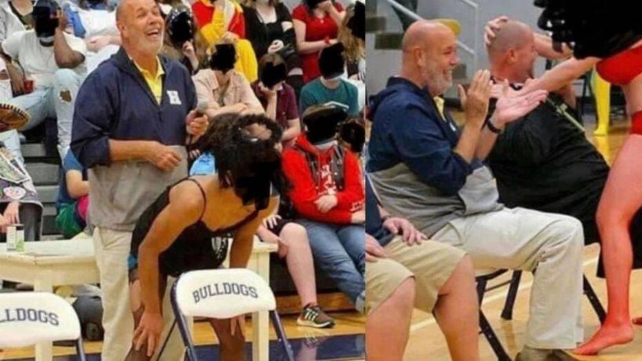 El principal de una escuela en Kentucky está metido en tremendo problemón luego de que fuera fotografiado haciendo bailes obscenos con estudiantes en una actividad escolar.