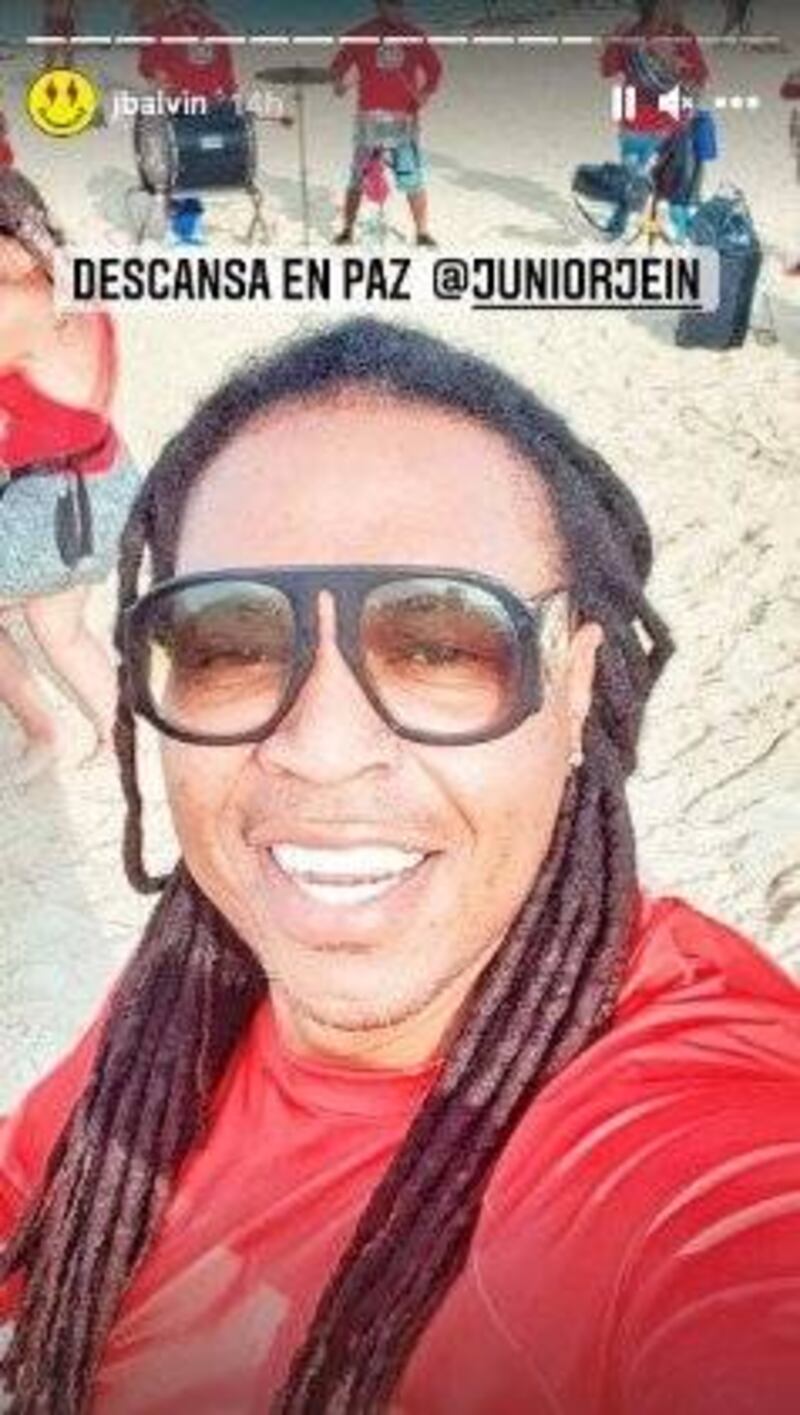 El pasado lunes J Balvin compartió con sus seguidores el difícil momento que atraviesa por la reciente muerte del cantante Junior Jein. A través de sus historias subió una fotografía de su gran amigo con la oración “Descansa en paz”, en donde se le ve feliz con la playa y varios músicos de fondo.