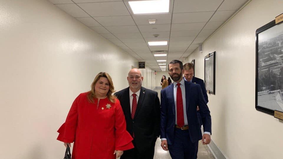 En esta imagen, por ejemplo, podemos apreciar a J-Go, comisionada residente en Washington, y a Johnny, presidente de la Cámara de Representantes, caminando junto a Donald Trump, jr. por algún pasillo misterioso del Capitolio de Washington.