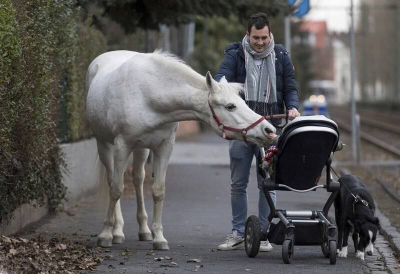 Su dueño, Werner Weischedel, dice que desde hace 14 años lleva a pasear a la yegua por un recorrido de unos 20 kilómetros (12 millas), principalmente por las orillas de río Meno.