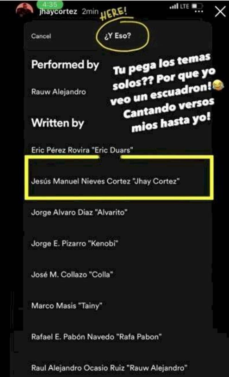 Jhay Cortez es uno de los primeros que tira en ente remix donde también participan Arcángel, Farruko, Miky Woodz y Luar La L. En sus barras Jhayco hasta hace referencia a Rosalía, la cantante española que tiene una relación con Rauw Alejandro: “Tu española quiere que le hable en english “Do you wanna fuck” Jhayco quiero en el Bentley”. En la guerra de quién es el más pop del género, Jhayco también hace referencia a ’Viceversa y Afrodisiaco los últimos dos proyectos de Rauw Alejandro.