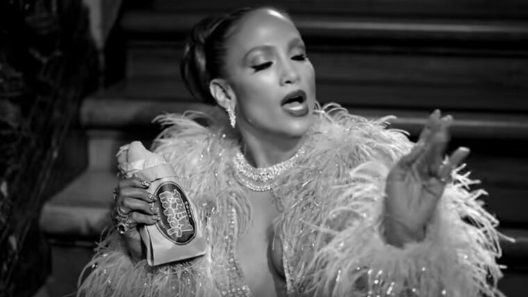 En un formato blanco y negro, el vídeo muestra a una JLo disfrutando de una lujosa vida con extravagantes atuendos, joyas y hasta animales exóticos.