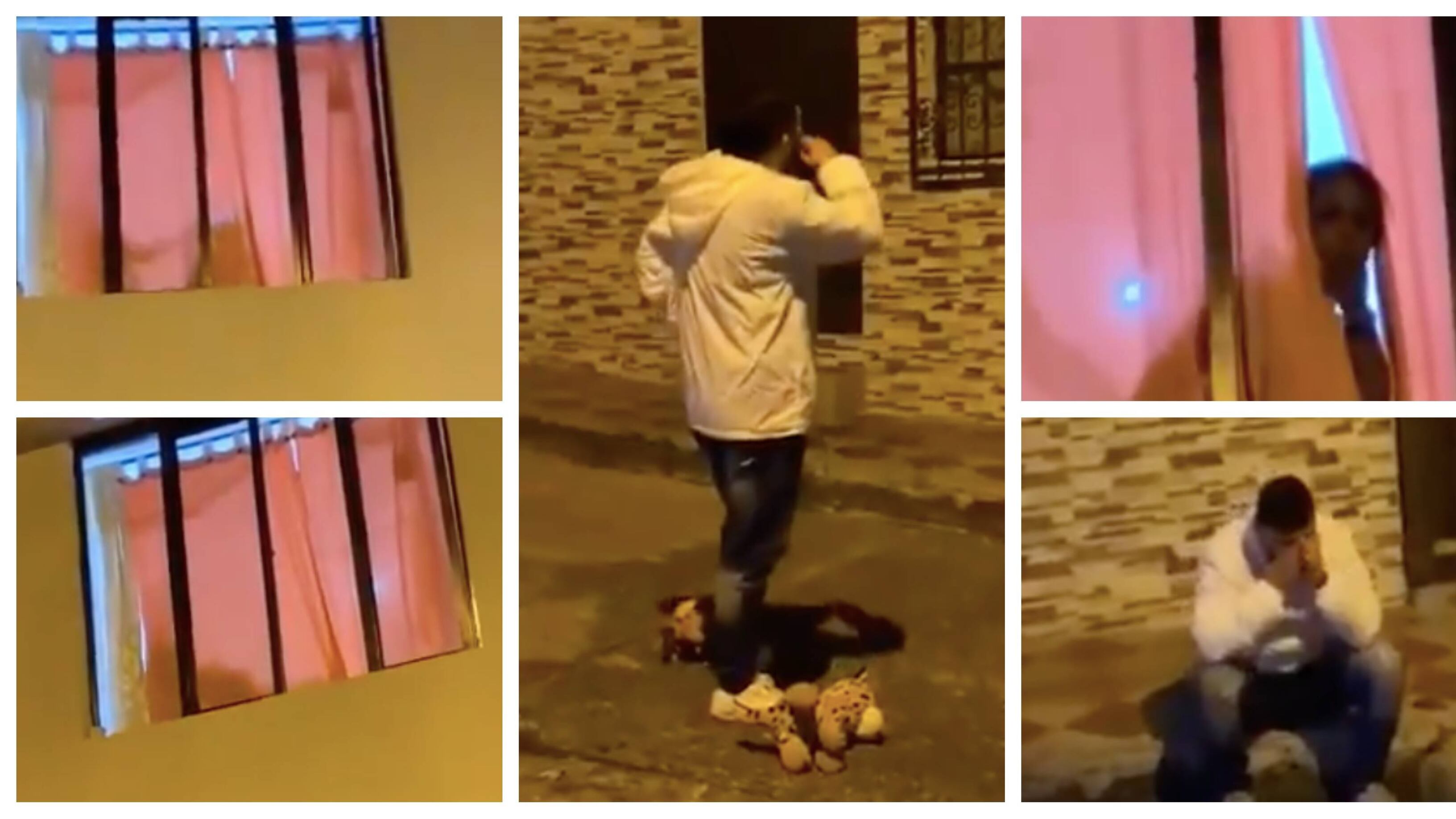 El incidente quedó registrado en video y las imágenes muestran al chico enamorado que llega con la agrupación musical cantando alegremente, cuando desde la cortina de la mujer, ven entre siluetas, como aparentemente ella se encuentra teniendo intimidad con otra persona.