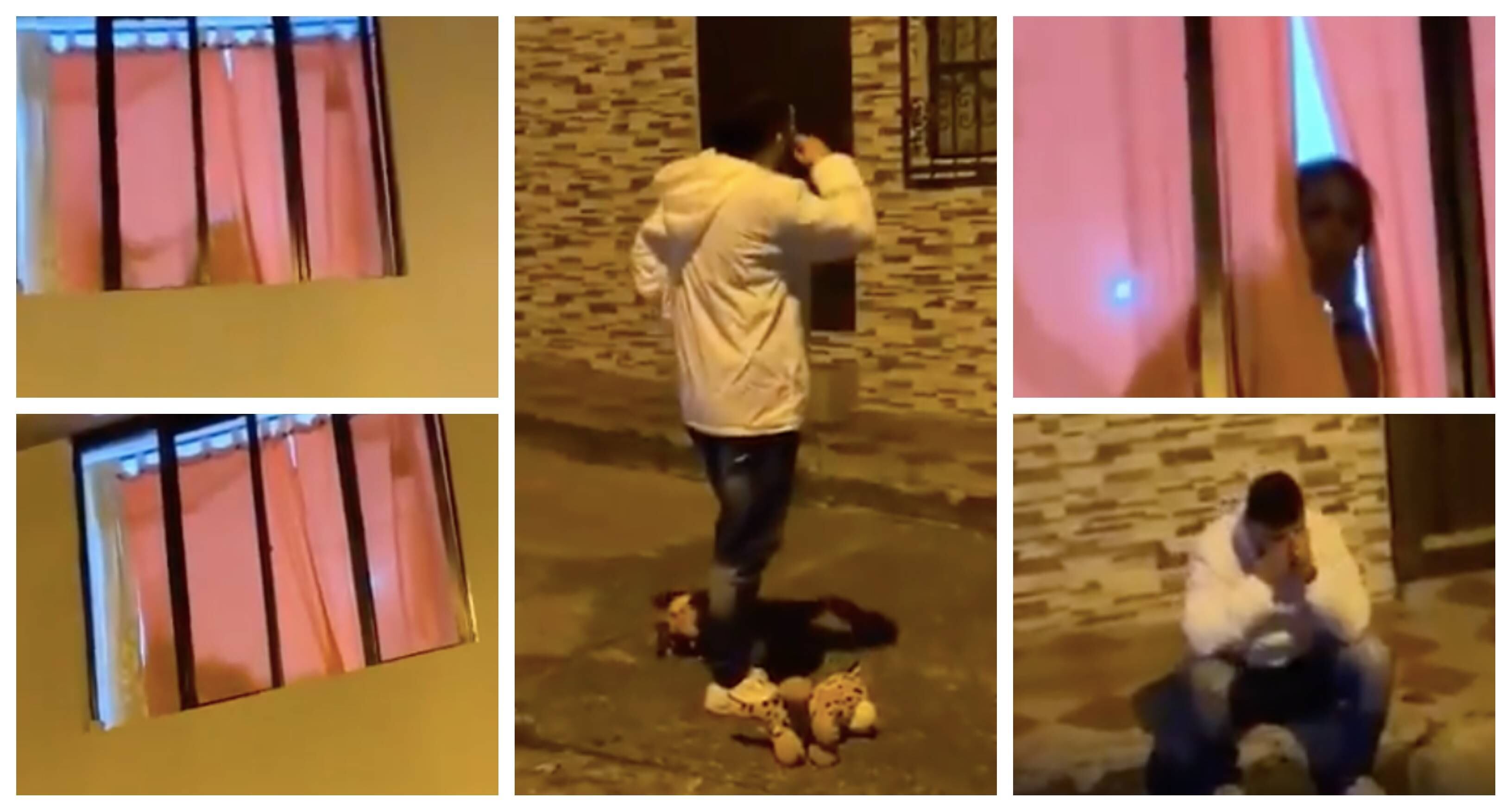 El incidente quedó registrado en video y las imágenes muestran al chico enamorado que llega con la agrupación musical cantando alegremente, cuando desde la cortina de la mujer, ven entre siluetas, como aparentemente ella se encuentra teniendo intimidad con otra persona.
