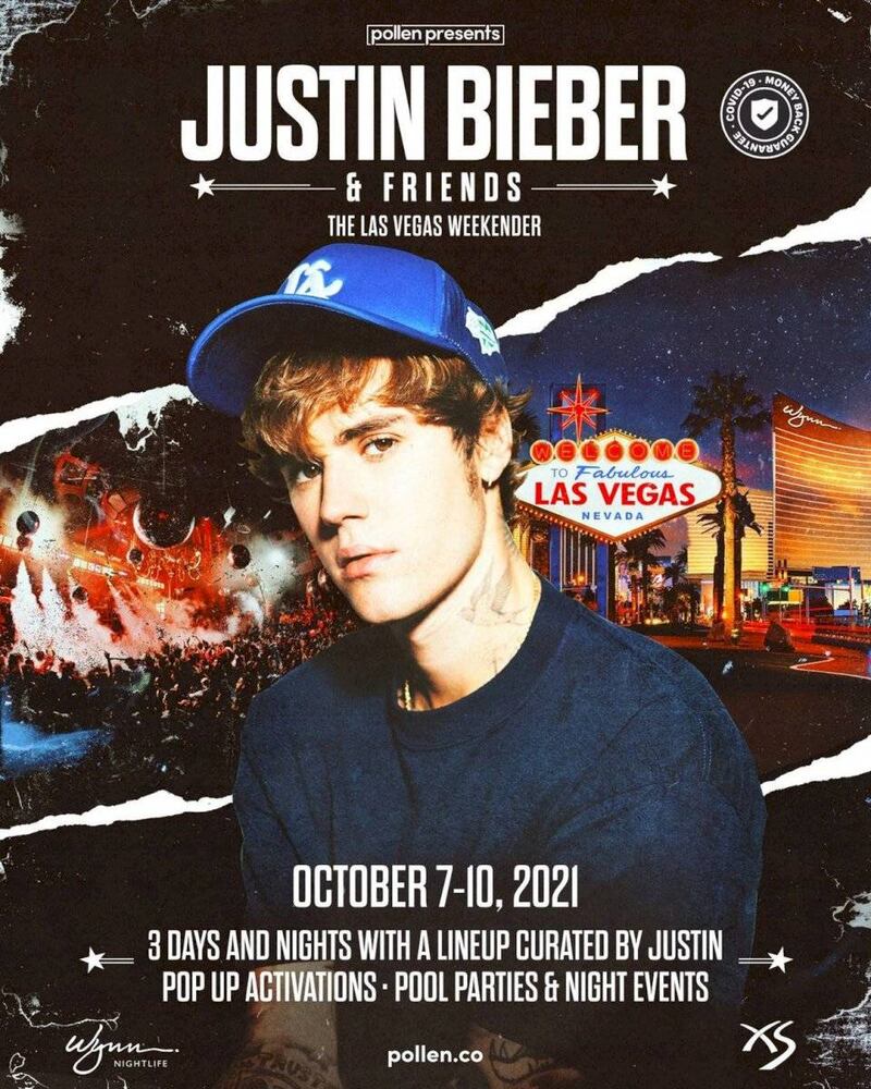 Este evento producido por Pollen irá a Las Vegas del 7 al 10 de octubre y será un evento único en su tipo ya que Bieber ha diseñado la escapada, con un itinerario lleno de sus actividades favoritas e invitados musicales seleccionados por esta gran estrella. La experiencia tendrá lugar durante tres días y tres noches, con el XS Nightclub de Wynn Las Vegas y el Encore Beach Club como lugares principales. El fin de semana estará marcado por la actuación de Justin Bieber como cabeza de cartel en la última noche en el aclamado destino nocturno, XS, dando a los fans la oportunidad de verle actuar de cerca en un espacio íntimo.