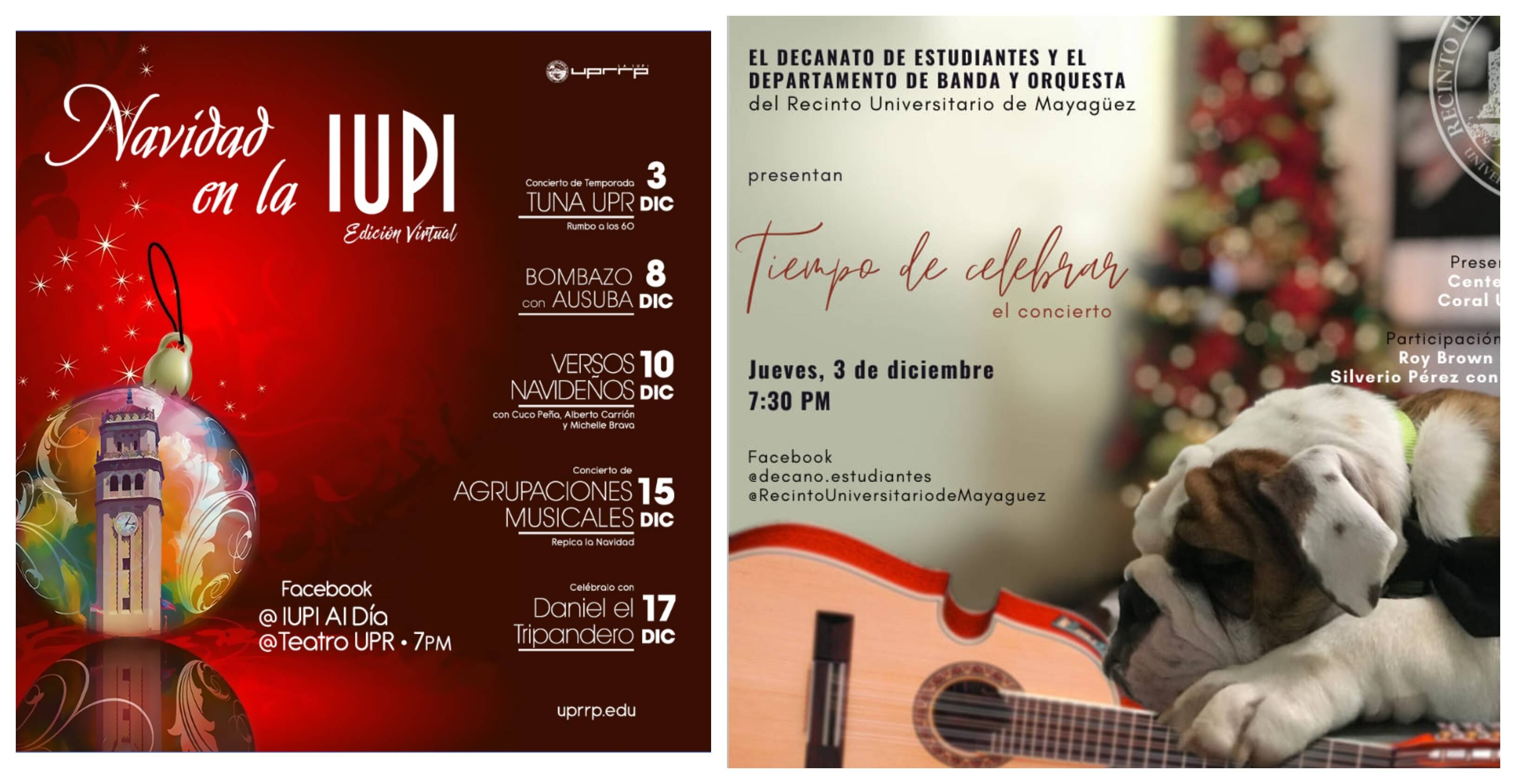 Disfruta los eventos de Navidad en la IUPI cada fecha a las 7:00 p. m. en las redes sociales UPR RP, Teatro UPR y IUPI al Día en Facebook.