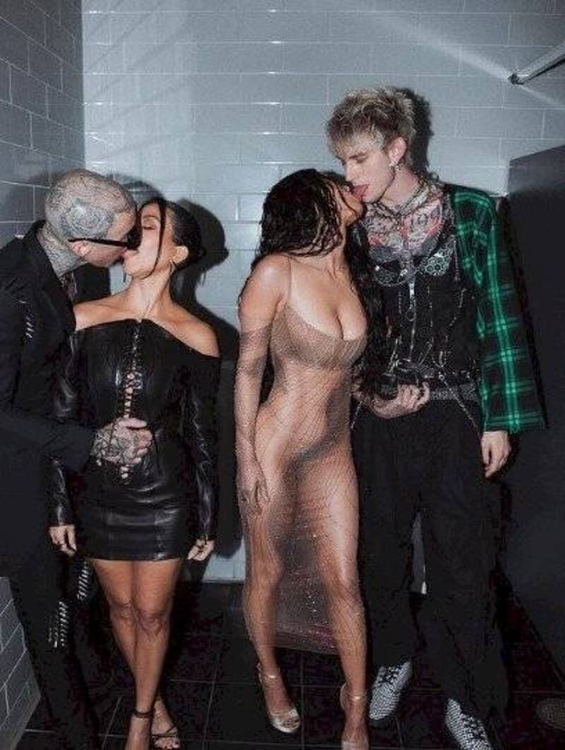 Durante el evento que reunió a lo mejor de la farándula estadounidense, la pareja se juntó con Megan Fox y Machine Gun Kelly, con quienes realizaron una divertida sesión de fotos en un sanitario. Besos y besos pareció ser el lema de estas fotos donde ambas parejas demostraron pura pasión.