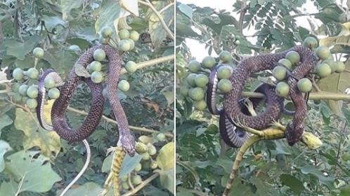 En la imagen se puede apreciar cómo la corredora le da pa’ abajo a la iguana en una mata de berenjena cimarrona. Para que usted vea, la naturaleza siempre encuentra su balance.