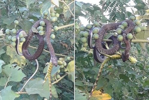 En la imagen se puede apreciar cómo la corredora le da pa’ abajo a la iguana en una mata de berenjena cimarrona. Para que usted vea, la naturaleza siempre encuentra su balance.