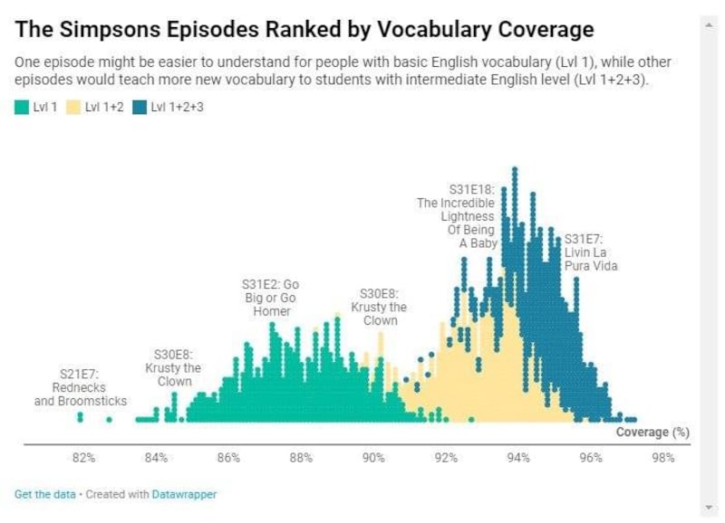 De acuerdo con el portal, Los Simpson tienen el mayor número de repeticiones en el vocabulario inglés avanzado. Se repiten al menos diez en promedio.