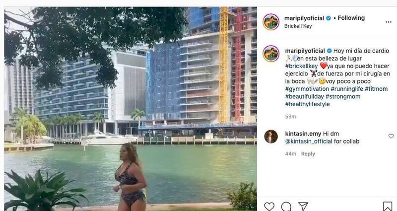 “Hoy mi día de cardio en esta belleza de lugar #brickellkey ya que no puedo hacer ejercicio de fuerza por mi cirugía en la boca voy poco a poco #gymmotivation #runninglife #fitmom #beautifullday #strongmom #healthylifestyle“, expresó en su cuenta de Instagram la beldad y empresaria ponceña.