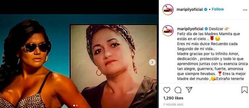 La talentosa empresaria y modelo María del Pilar ’Maripily’ Rivera recordó a su madre fallecida con un emotivo post en Instagram en la que presentó dos fotos de su progenitora.