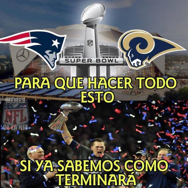 Los Patriots y los Rams disputan esta tarde el trofeo Vince Lombardi, los internautas no se han hecho esperar con los memes del Super Bowl.