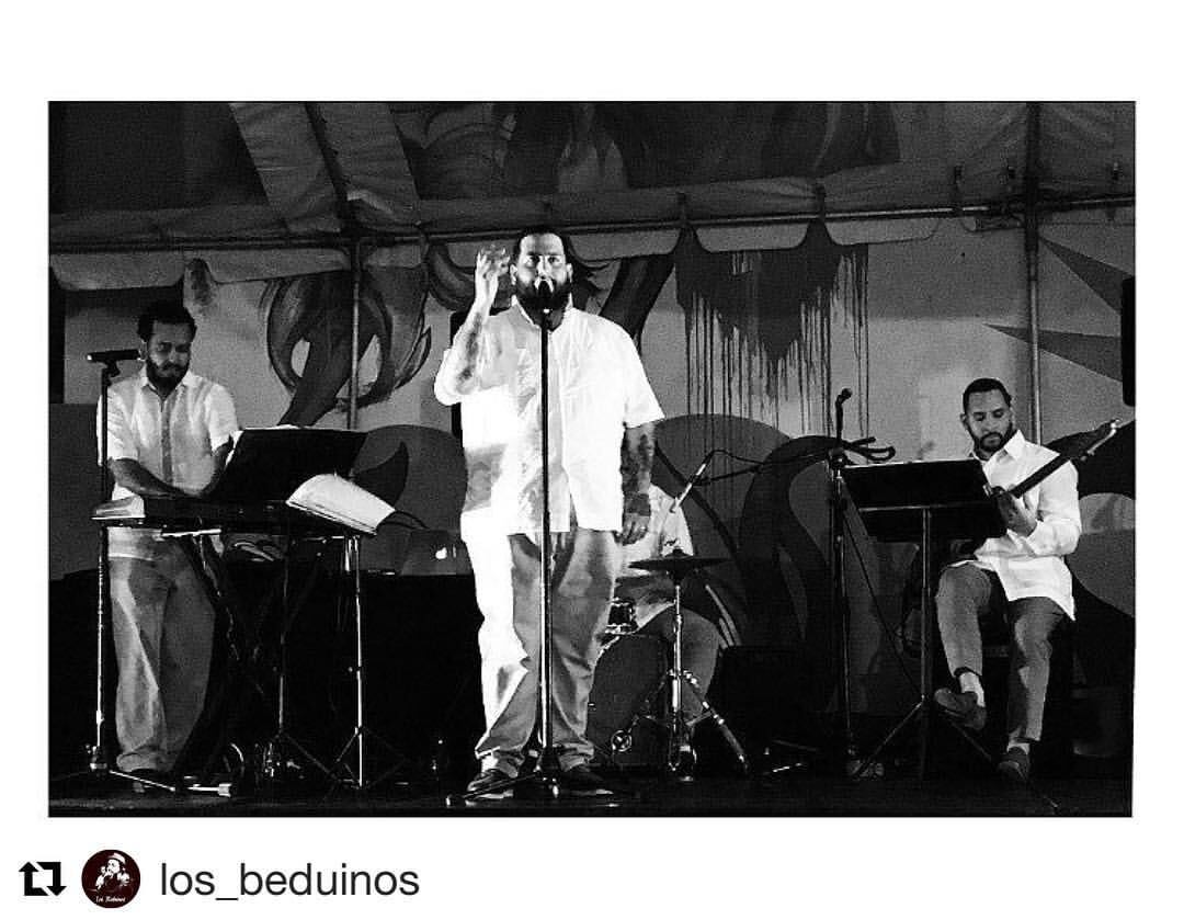 “Hacemos reinterpretaciones de clásicos de José José, de Nino Bravo y de muchos otros cantantes”, le dijo a El Calce el gran Mofongo, quien compone el cuarteto de Los Beduinos junto a dos miembros de Macabeo, Enrique “Peru” Chávez, en la percusión, y el tecladista Aníbal “El S” Quintero, y junto al bajista Jonathan “El Bote” González, pilar de las bandas de Calle 13 e ILE.