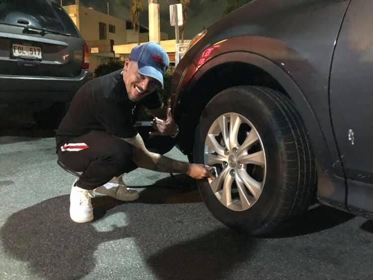 Ser artista puede que cambie a la gente un poquito. La fama no es tan bonita como parece. Sin embargo, Pedro Capó se encontró con una familia en un garaje de Baldrich y al notar que necesitaban una mano para cuadrar el aire de las gomas, se ofreció y hubo mucho gozo.