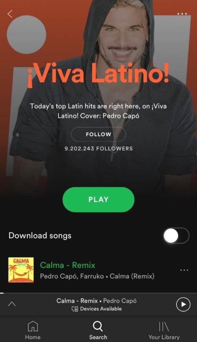 En lo que respecta a la plataforma Spotify, la canción se encuentra #1 en VIVA LATINO, la playlist con las canciones más populares del mundo, No solo eso, sino además, Pedro Capó se encuentra en la portada de dicha lista junto a Farruko.