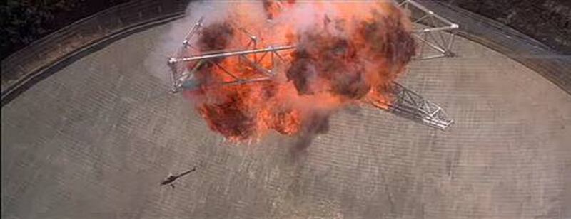 Utilizaron el platillo del Observatorio de Arecibo como escena para la localización del platillo satelital de la película, disfrazado como un lago.