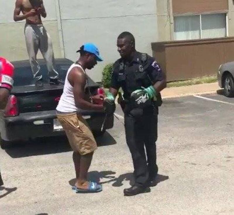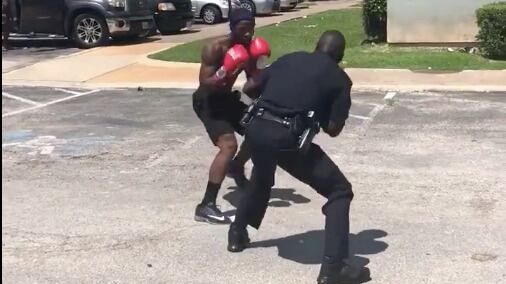 En ese sentido, un policía se tomó la molestia de 'guantiar' un raundsito con un chamaquito.