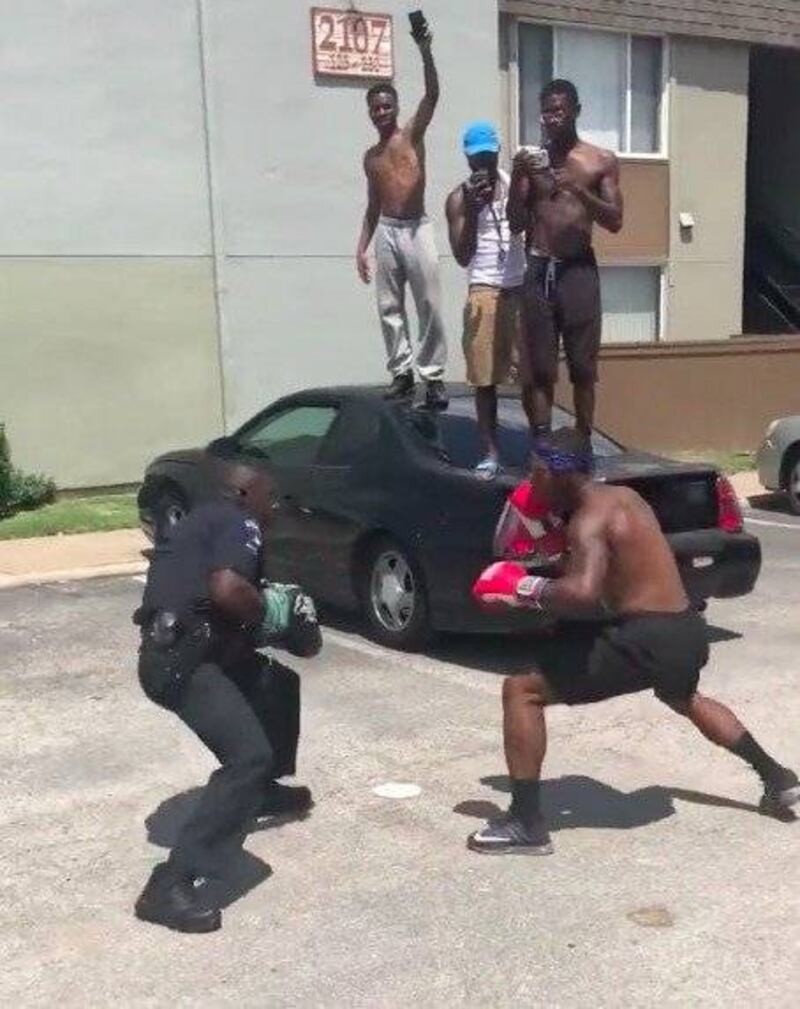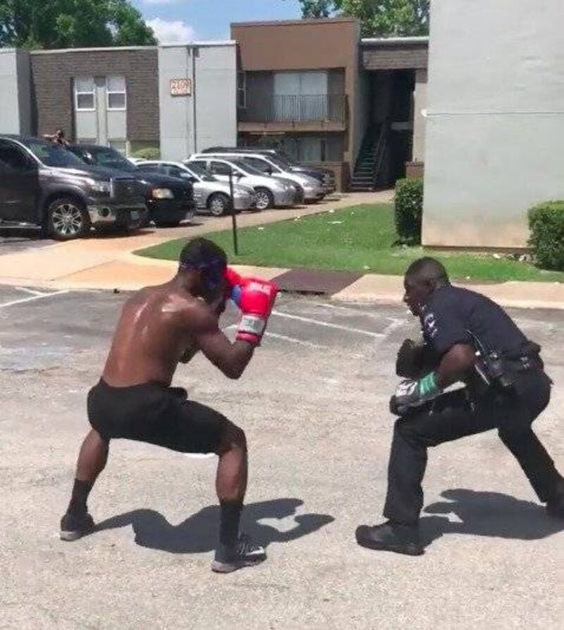 El tipo se bajó de la patrulla se puso lo guantes y fue pa' encima.