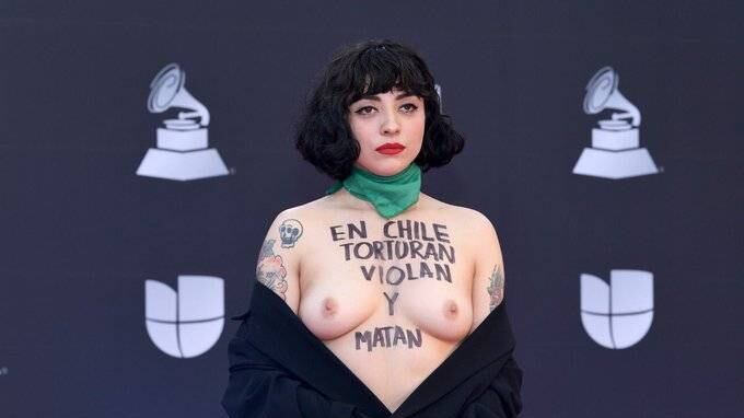 La laureada cantante chilena, Mon Laferte, realizó una potente protesta en la alfombra roja de los Premios Grammy, al realizar un topless, en el cual denunció la tortura y la represión en Chile.