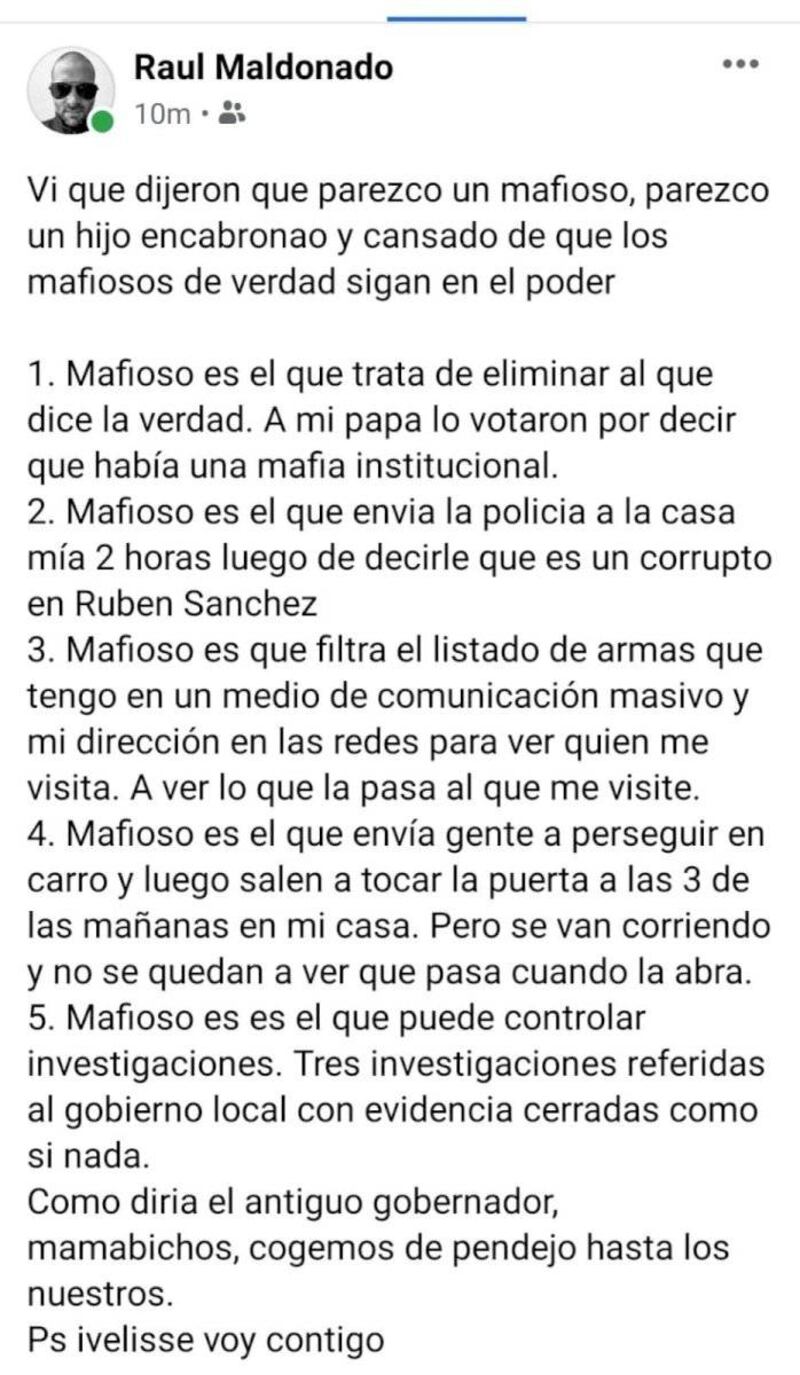 “Como diria el antiguo gobernador, mamabichos, cogemos de pendejo hasta los nuestros. Ps ivelisse voy contigo”, agregó al final del post, en lo que pensamos que es un mensajito a Ivelisse Torres Rivera, procuradora general confirmada en el 2019.