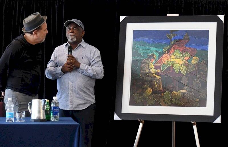 Como parte de la actividad, el pintor Pablo Marcano García le hizo entrega de una de sus obras al poeta de la salsa, a modo de homenaje.