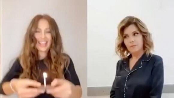 Ahora, aumentó el rating con otro clip en el que recrea con su comadre Thalía el video viral de las niñas que pelean por soplar la velita de un pastel de cumpleaños.
