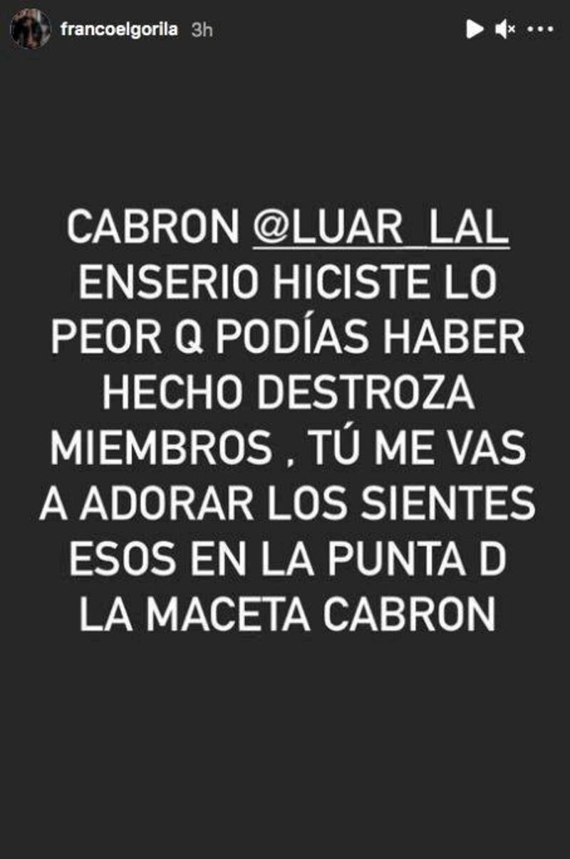 Después de que Franco se metió con la “mai” de Luar, este comenzó a recordarle a Franco que “no pagan pensión” y se fueron personal por ahí pa’ bajo.