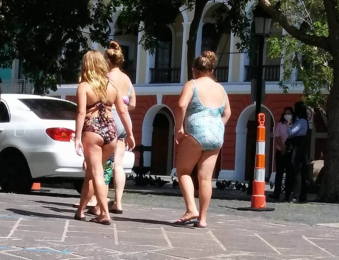 A través de las redes sociales, corre una foto de estas tres personas paseándose por el Viejo San Juan en traje de baño. Algo parecido a lo que vimos esta misma semana con otras turistas que también enseñaron sus carnes en The Mall Of San Juan.