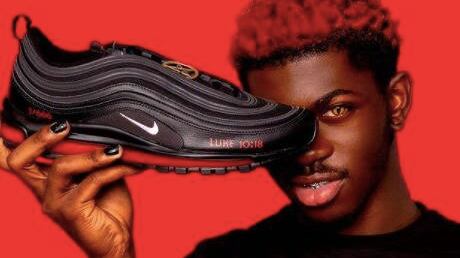 Las zapatillas negras y rojas, parte de una colaboración entre Lil Nas X y el colectivo artístico MSCHF con sede en Nueva York, y se hicieron con Nike Air Max 97, aunque la marca de ropa deportiva se ha distanciado del diseño.