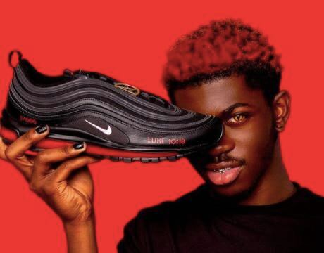 Las zapatillas negras y rojas, parte de una colaboración entre Lil Nas X y el colectivo artístico MSCHF con sede en Nueva York, y se hicieron con Nike Air Max 97, aunque la marca de ropa deportiva se ha distanciado del diseño.