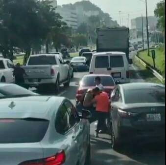 En el video también se puede ver que un menor de edad se baja de uno de los vehículos y también comienza a pegarle a la otra dama, tal vez siguiendo el ejemplo de la mujer que lo acompañaba o no supo cómo reaccionar al suceso.