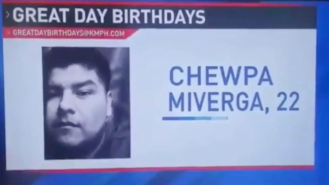 El legendario ciudadano Chewpa Miverga celebró su onomástico número 22 esta semana y fue felicitado en el canal Fox26