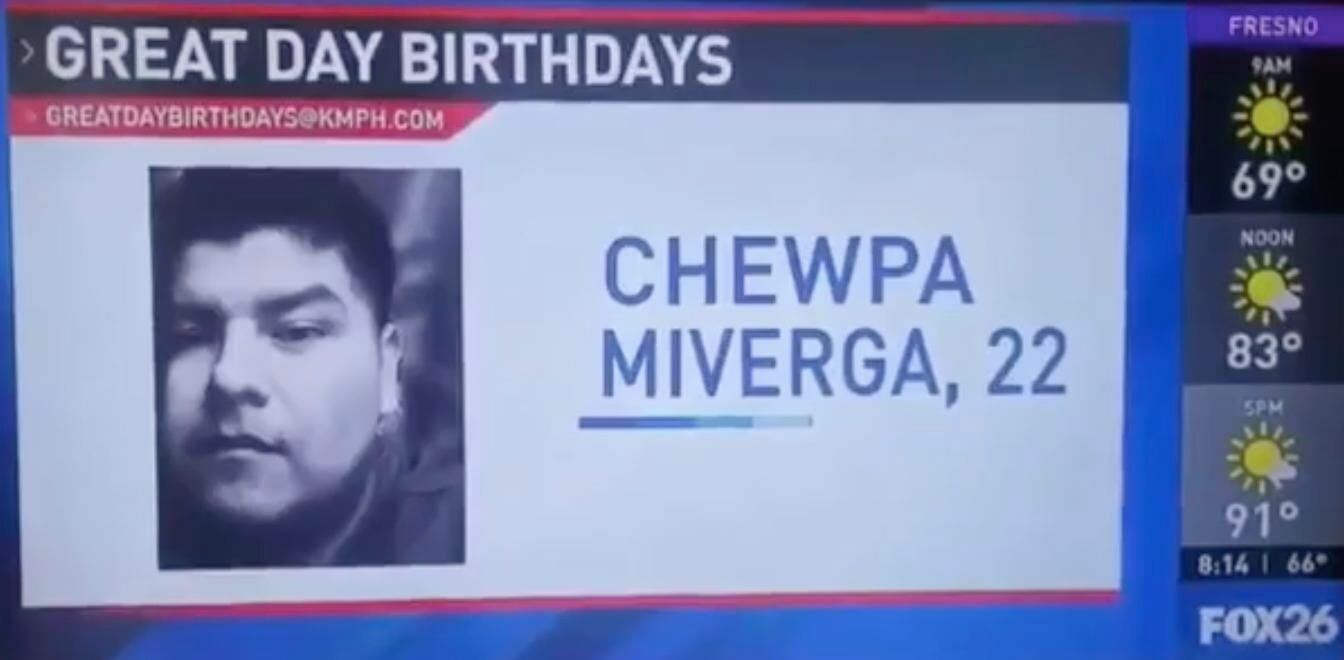 El legendario ciudadano Chewpa Miverga celebró su onomástico número 22 esta semana y fue felicitado en el canal Fox26