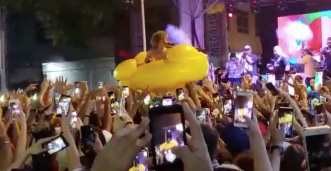 Sí, quizá usté haya visto gente ya viajando sin ver frente al Ocho de Blanco, eso no es algo nuevo. Pero en esta ocasión, fue un samurai junqueño el que evocó a José Feliciano en plena avenida Universidad. Jon Z volvió a hacer de las suyas y se tiró al público encima de una balsa en forma de patito de hule amarillo, siendo recibido por la multitud con gozo magnánimo.