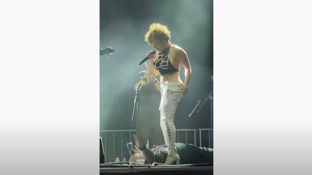 Antes de que esto ocurriera, la vocalista dijo: “Prepara al hombre que tiene la lata de cerveza en la cabeza, lo vamos a traer al escenario…Tengo que hacer pipí…y no puedo ir al baño”.