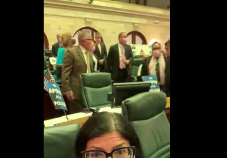En el video se puede ver al representante José Aponte del Partido Nuevo Progresista (PNP) gritando a to’ lo que dá contra la delegación del Partido Popular Democrático (PPD). Lo que se puede escuchar es que dice: “Parece mentira”.