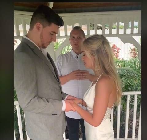 En el video se puede ver cómo la joven está tambaleando mientras el pastor de la boda habla baba que se acabó. En un punto la novia casi cae encima del novio y posteriormente se aleja para vomitar.