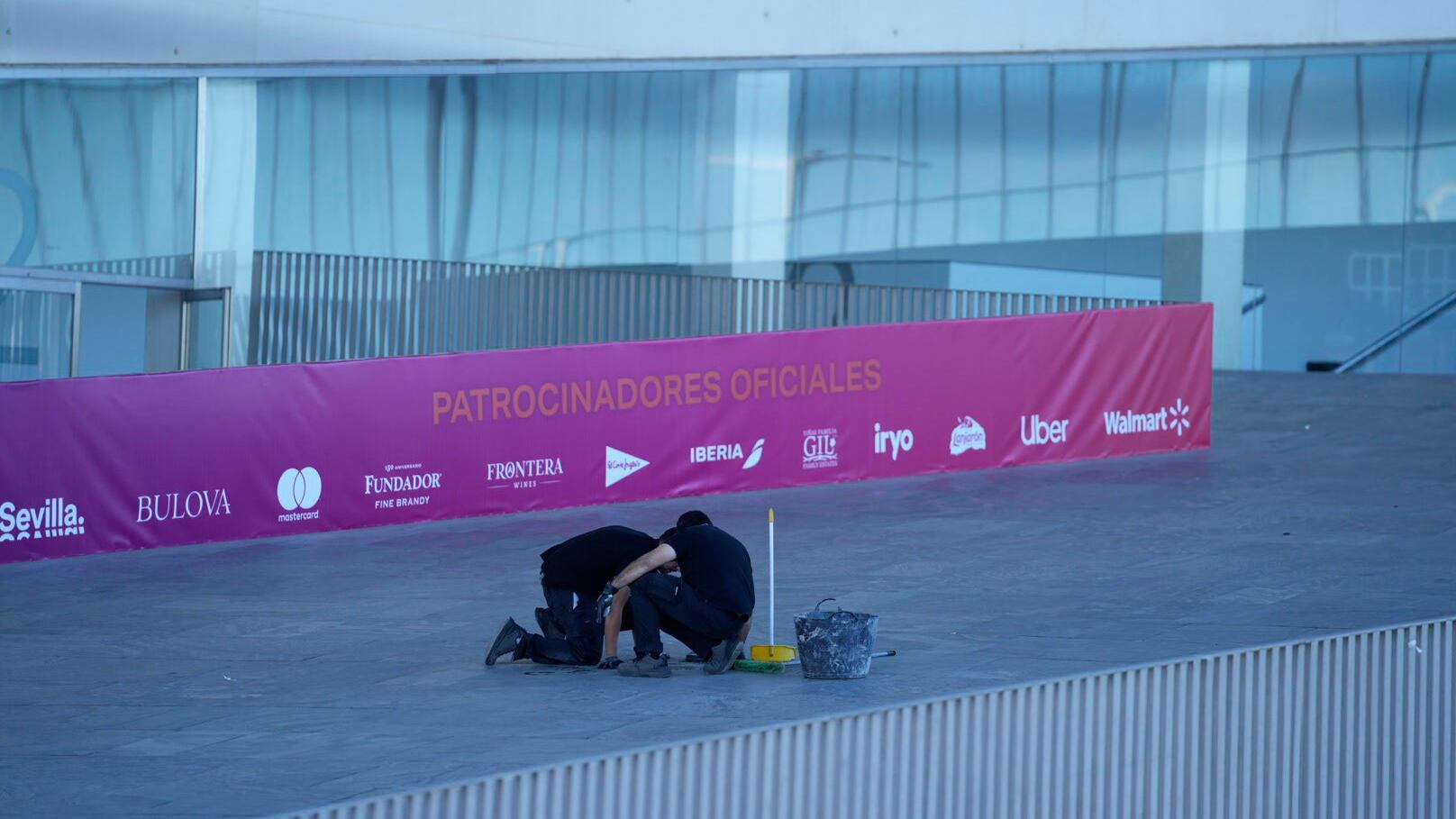 Preparativos de última hora en Fibes, en Sevilla, con motivo de la gala de los Grammy. JOAQUIN CORCHERO / EUROPA PRESS (Joaquin Corchero)