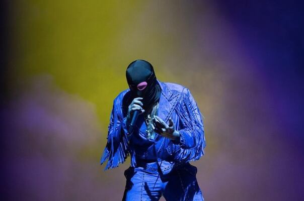 El vegabajeño enmascarado y cómodo desde el carro comenzó a sonar las primeras canciones de su álbum que fueron bien recibidas entre el público. Sin embargo, no cantó, ni se expresó hacia el público.