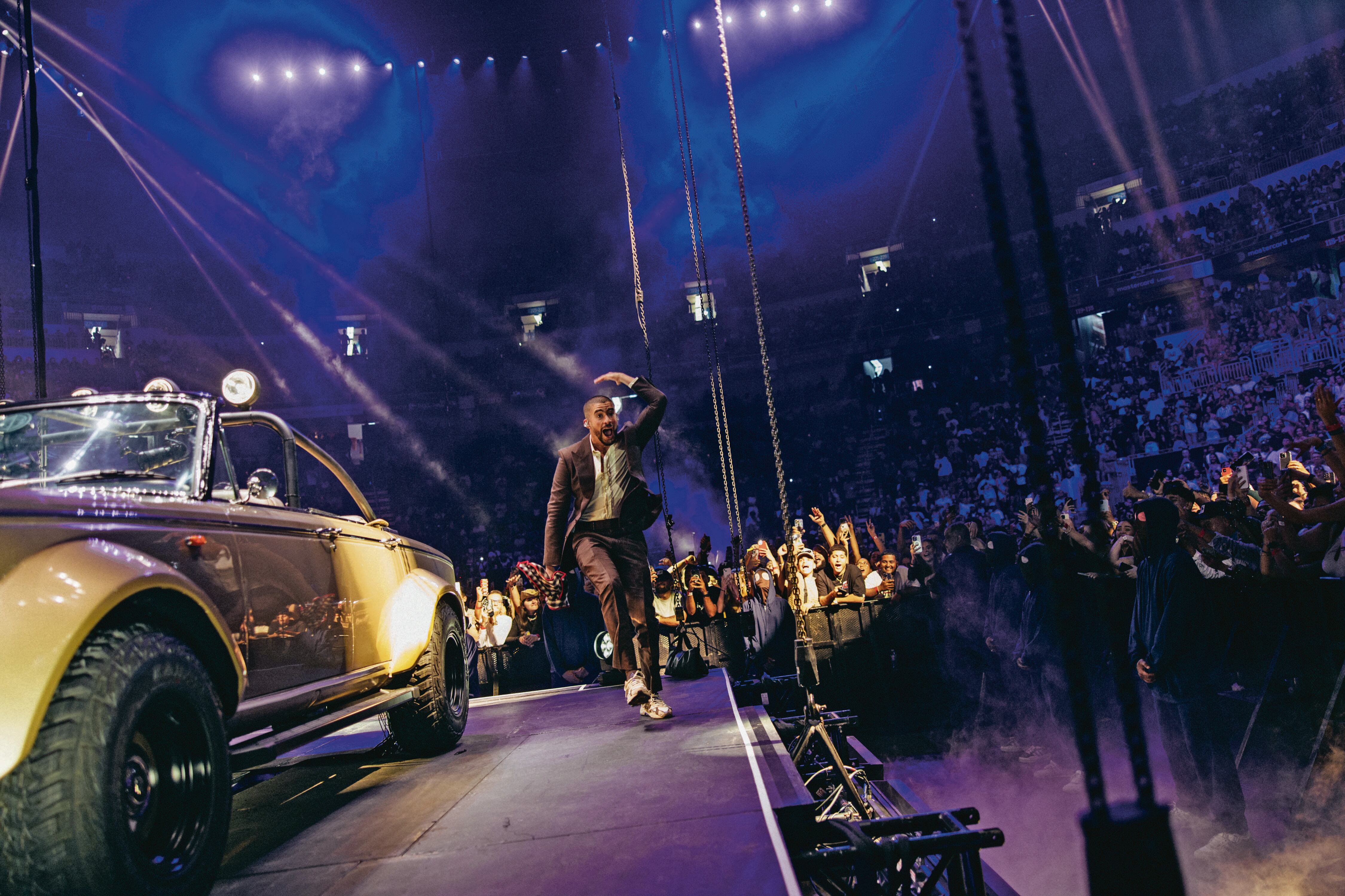 El boricua hizo su entrada al estadio en un caballo, alusivo a la temática del álbum “Nadie sabe lo que pasará mañana”. Durante el concierto, el artista realizó una mezcla de sus temas más recientes con los temas que han sido un palo en los últimos años.