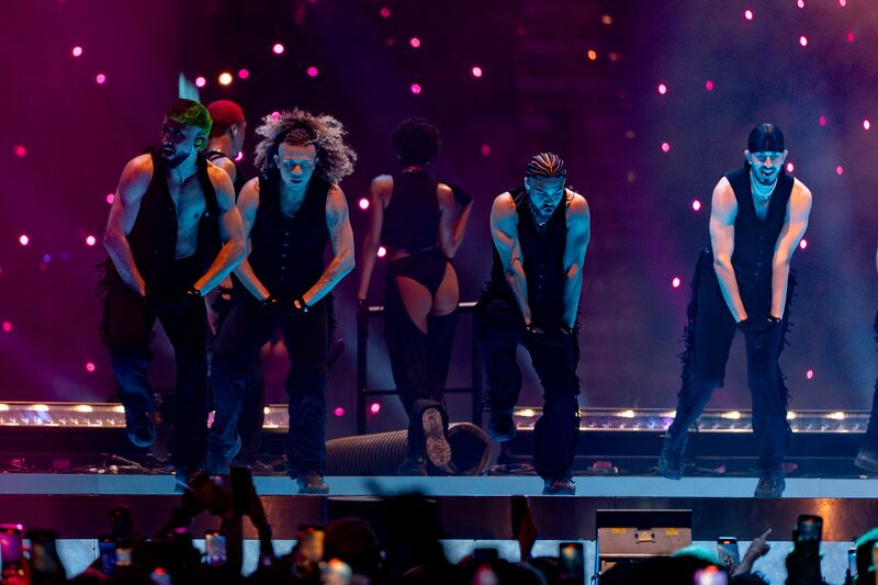 El artista cerró la noche con la compañía de una batucada para deleitar a sus fans con su himno “El Apagón”, dedicado a Puerto Rico, que hizo que todo el Coliseo se pusiera de pie y bailara.
