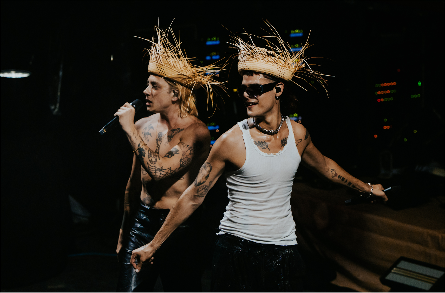 La noche comenzó a arder con el pegajoso “Dumbai”, que desató una ola de saltos, gritos y celulares en alto. A partir de ahí, la intensidad no hizo más que crecer. Temas como “Baby Gangsta”, “Mi Diosa”, y “A Mí No” detonaron la euforia colectiva, mientras que composiciones como “Cosas Ricas”, “Pirlo” y “Re Forro” elevaron el pulso de la audiencia con sus ritmos contundentes y líricas provocadoras.