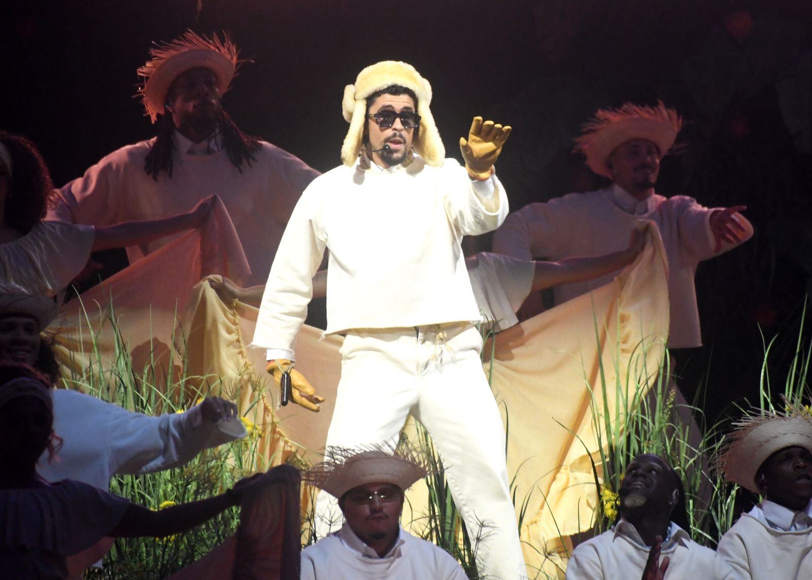Previo a su aparición, se presentó un video que recorrió su trayectoria musical, seguido por la interpretación del tema “Café con Ron” a cargo del grupo puertorriqueño Los Pleneros de la Cresta, quienes colaboran con el artista en la canción.