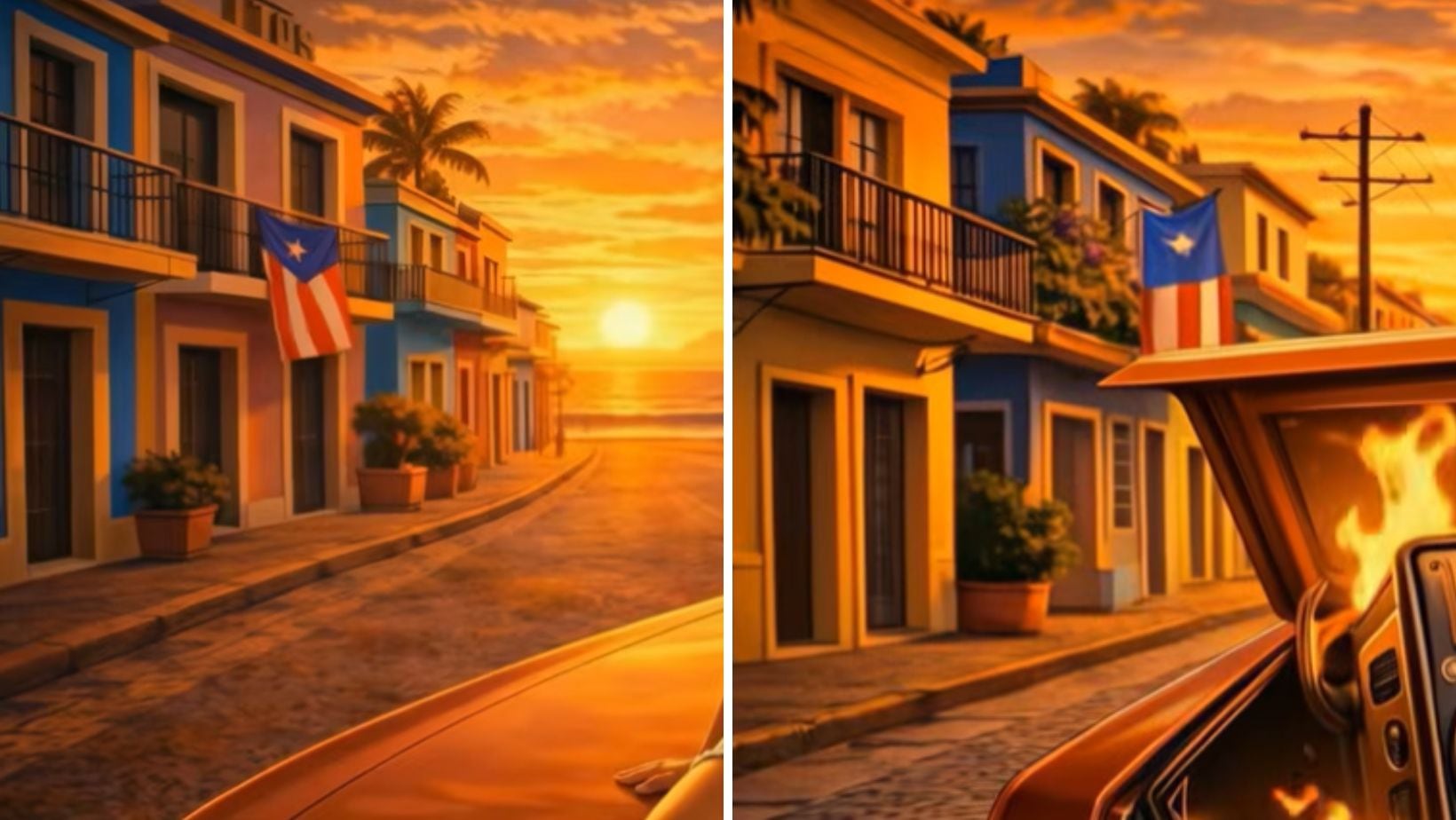 Resulta que en el video se resalta la cultura e identidad puertorriqueña, con escenarios realizados con Inteligencia Artificial y que en varias ocasiones sale lo que se supone que sea la bandera de Puerto Rico, pero con diseños incorrectos.