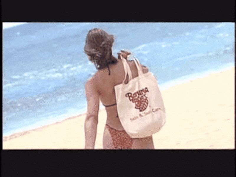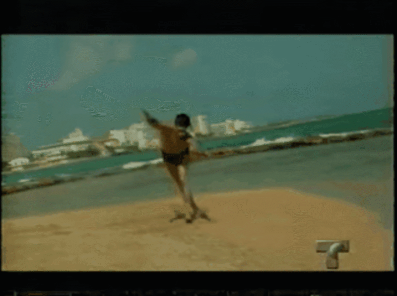 El sutil “product placement” siempre estaba presente. Aquí vemos a Brenda Robles que no suelta su bulto ni para entrar al mar