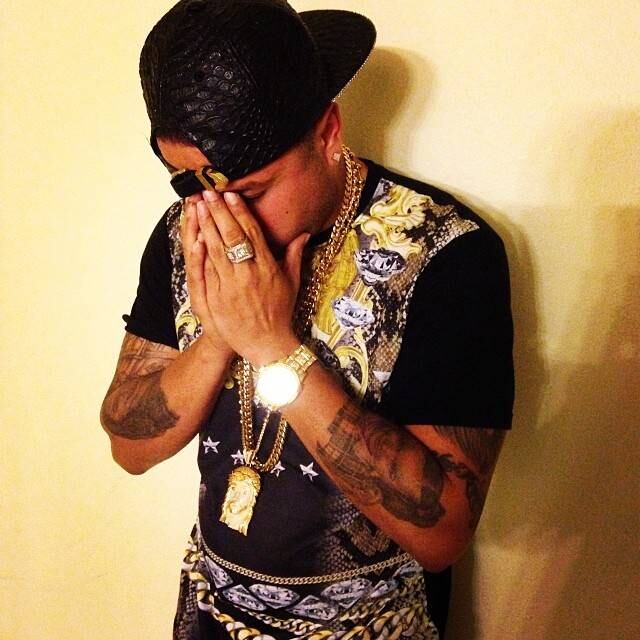 A la usanza de los artistas urbanos que disfrutan estar en una cabina de grabación sin camisa, Tempo también demostró que él tiene lo suyo. Con una pose de sideboob y un fracatán de cadenas de oro, la imagen nos muestra un Tempo reflexionando sobre su próxima foto.